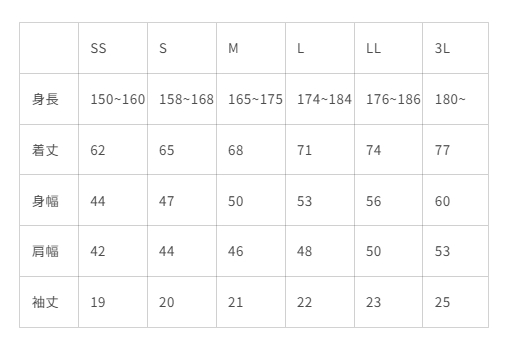 リライブシャツの公式サイトには、身幅や着丈、肩幅など詳細なサイズ表が掲載されています。